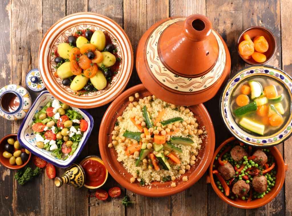 Le terme tajine désigne à la fois le plat en terre cuite et le ragoût mijoté qu’il contient. Plat emblématique de la cuisine marocaine, ce ragoût cuit lentement dans une casserole en terre cuite à la forme conique caractéristique.